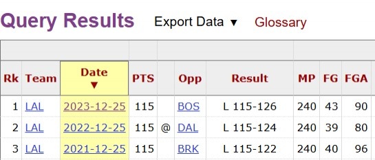 據(jù)統(tǒng)計,在本賽季之前,湖人在圣誕大戰(zhàn)已經(jīng)遭遇3連敗,具體如下: