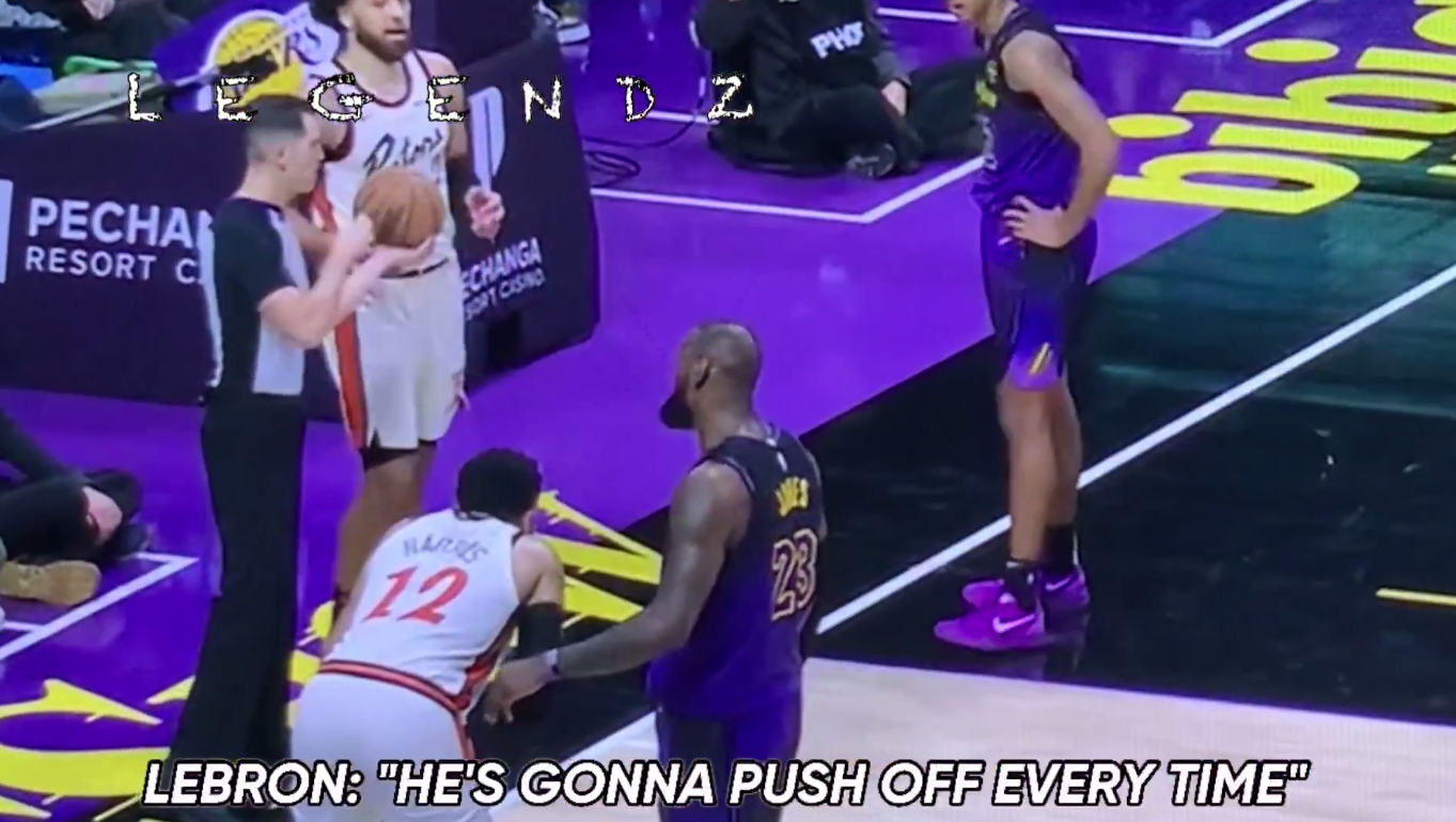 詹姆斯防守CC破壞球權(quán)出界,隨后朝裁判抱怨:他每回合都大肘子開路推人!