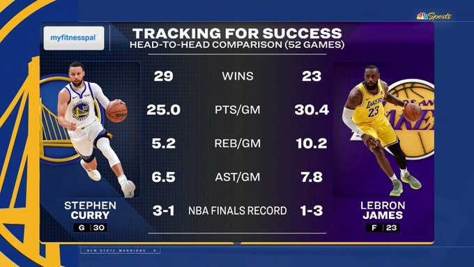 賽前轉(zhuǎn)播方曬出庫(kù)里和詹姆斯的生涯交手記錄,兩人共交鋒52次,庫(kù)里29勝23負(fù)略占上風(fēng),總決賽系列賽庫(kù)里3勝1負(fù)。個(gè)人具體數(shù)據(jù)如下:
