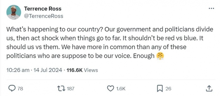 值得一提的是,特朗普被槍擊時,只有曾長期在魔術(shù)效力的退役球員泰倫斯-羅斯克制的表示這么搞有點過分了,而庫里等人則借此事重申自己對控槍的態(tài)度,傾向性很明顯
