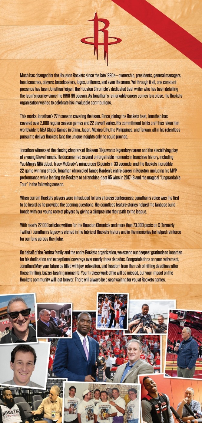 費根是《休斯敦紀事報》的首席籃球記者,過去27個賽季一致致力于火箭的報道。