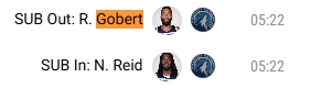 末節(jié)5分22秒,戈貝爾被換下,此后再也沒有上場,森林狼打出23-8