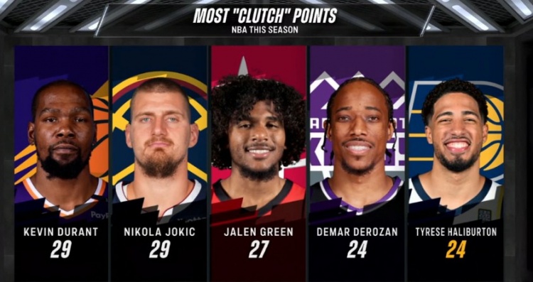 11月9日訊 今日多場(chǎng)NBA比賽將打響,賽前轉(zhuǎn)播方曬出本賽季至今的球員關(guān)鍵得分排行榜: