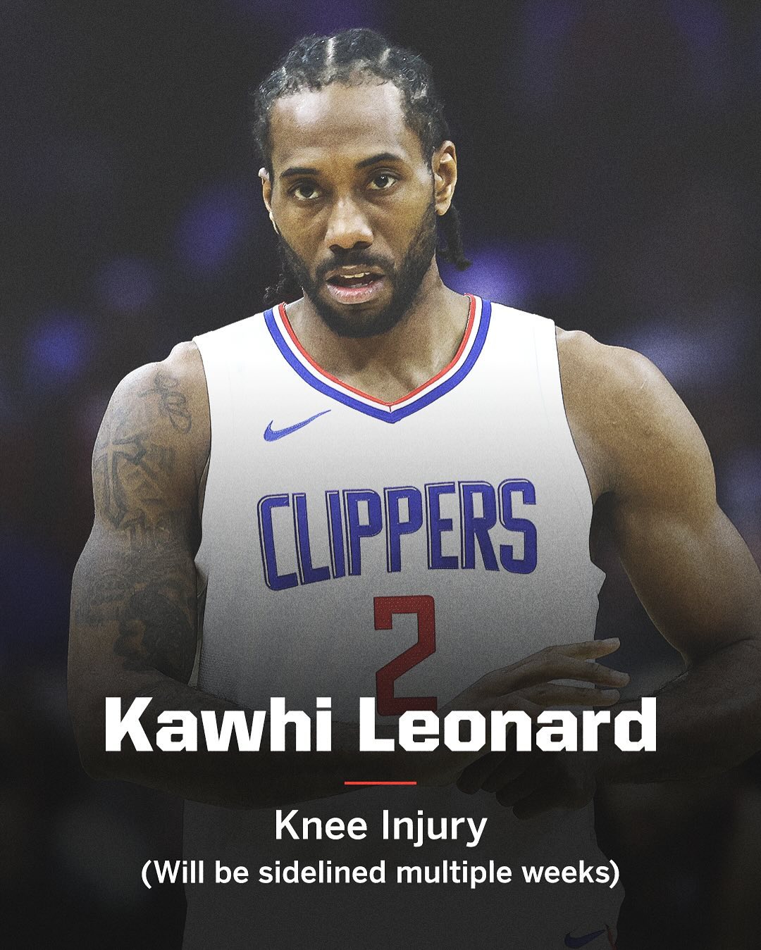 萊昂納德 膝蓋傷勢(shì) 缺陣數(shù)周