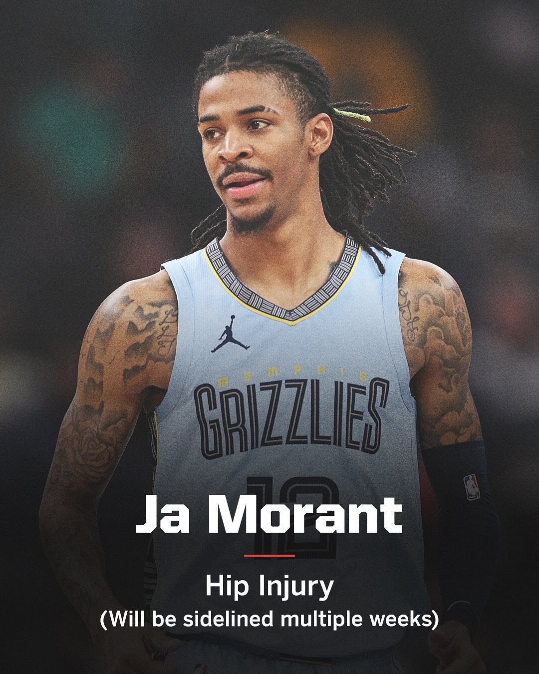 莫蘭特 髖部傷勢(shì) 缺陣數(shù)周