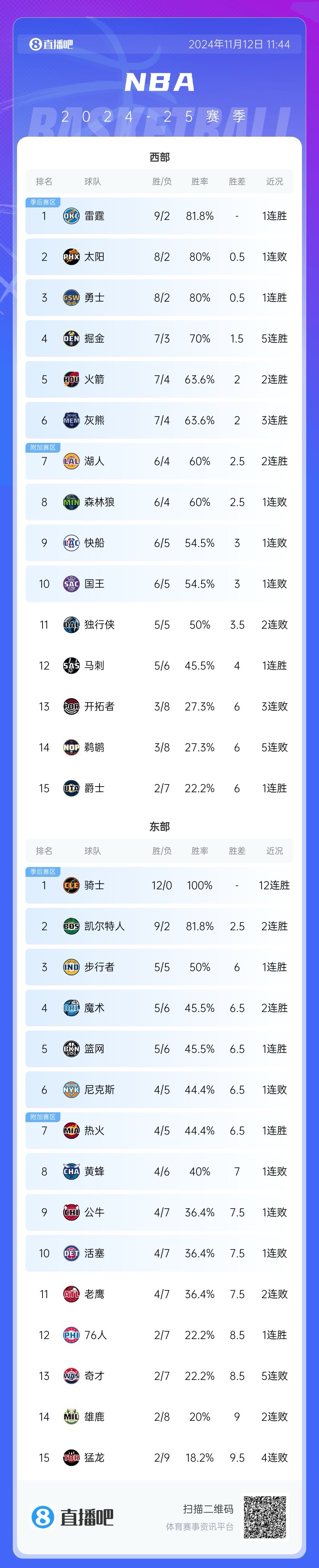 依靠這場(chǎng)勝利,雷霆9勝2負(fù)反超太陽登頂西部第一。