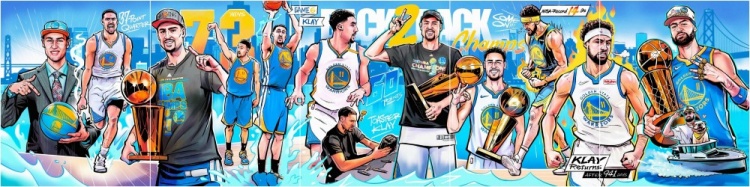 勇士官方為克萊做了主題漫畫(看全景圖請翻到最下面),其中包括四冠、單場14記三分(NBA紀(jì)錄)、73勝勇士、單場60分、單節(jié)37分、G6湯、時(shí)隔941天傷愈復(fù)出、船長與狗等細(xì)節(jié)滿滿。
