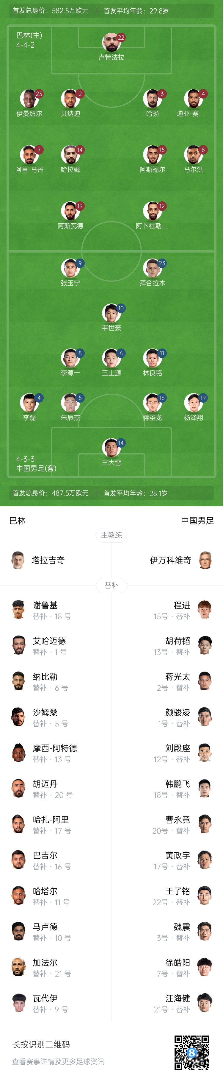 11月14日訊 北京時間今晚22點(diǎn),世預(yù)賽亞洲區(qū)第三階段18強(qiáng)賽C組第5輪,中國男足客場挑戰(zhàn)巴林男足,賽前雙方公布首發(fā)。