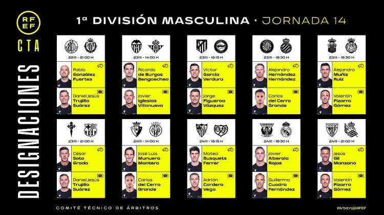 11月21日訊 本周四,西班牙足協(xié)公布了西甲第14掄聯(lián)賽的主裁判安排,哈維爾-阿韋羅亞將執(zhí)法皇馬客場對陣萊加內(nèi)斯的比賽。