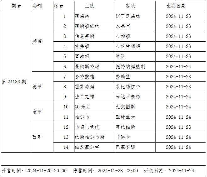 經(jīng)歷11月國際比賽日,本周末歐洲五大聯(lián)賽重燃戰(zhàn)火,傳足勝負彩第24183期競猜賽事不乏焦點賽事,其中曼城VS熱刺、AC米蘭VS尤文的強強對話尤為引人注目。此外,阿森納將在主場迎來黑馬球隊諾丁漢森林,巴塞羅那將在客場出戰(zhàn)塞爾塔。