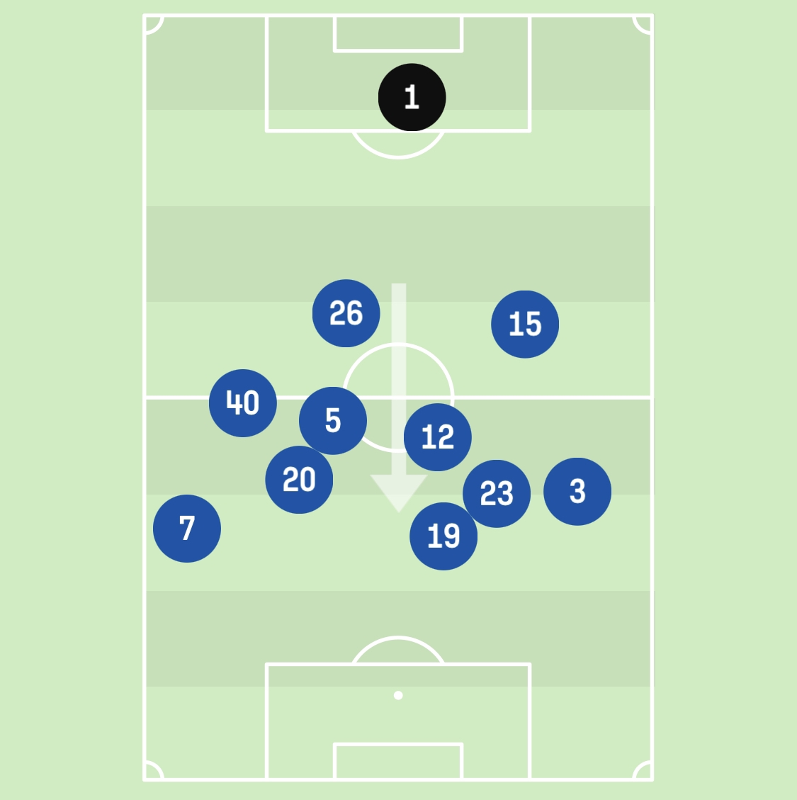 伊普斯維奇站位圖,進(jìn)攻方向↓↓
