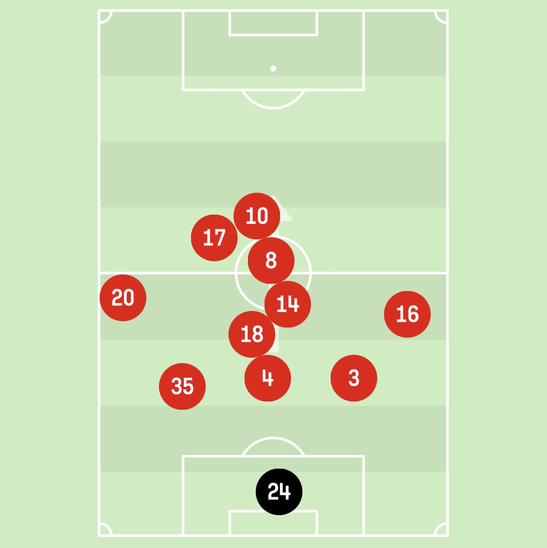 曼聯(lián)站位圖,進(jìn)攻方向↑↑