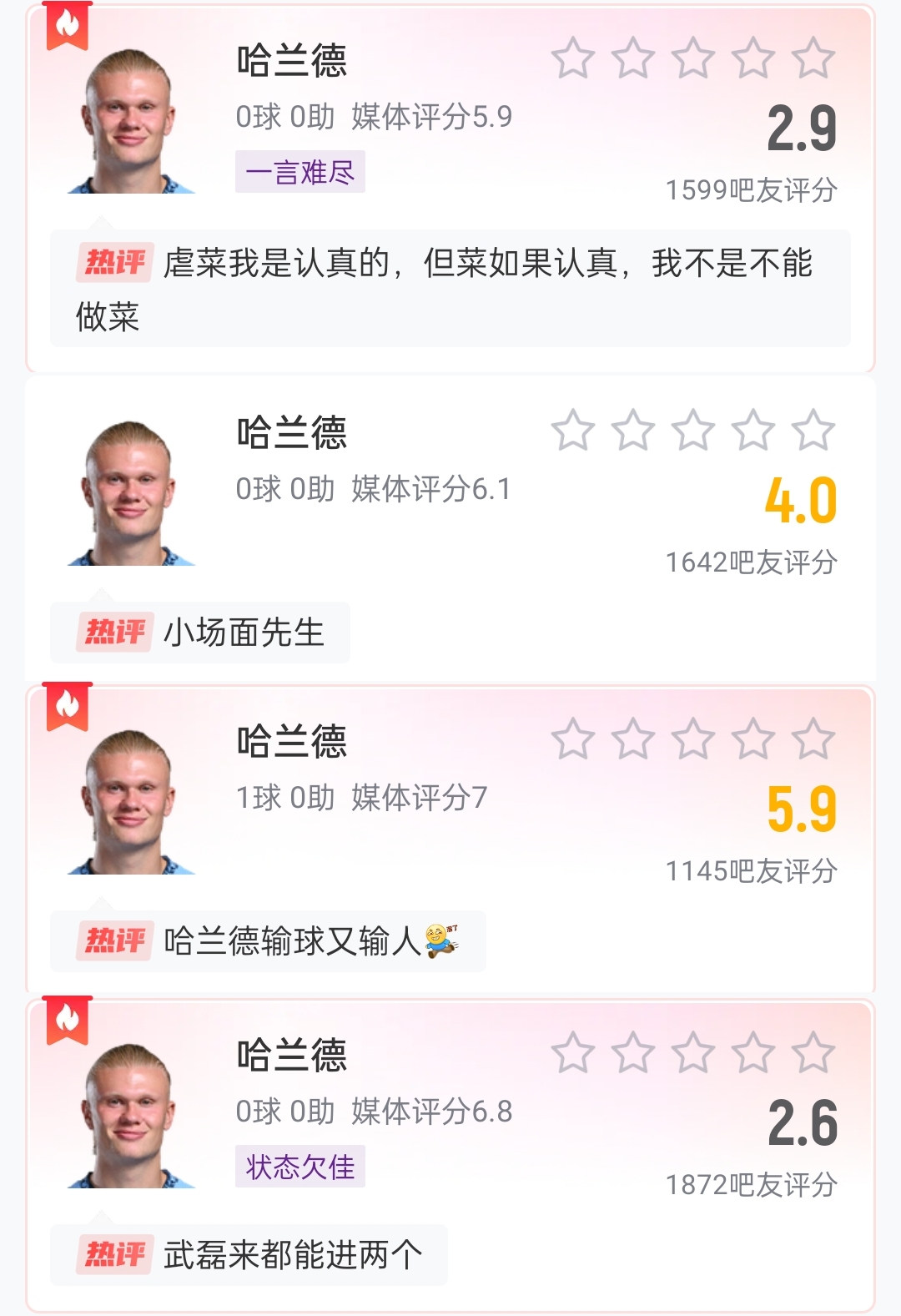 哈蘭德在曼城近5場比賽打進(jìn)2球,在近4場錯失了9次良機(jī),球隊(duì)也遭遇了5連??;