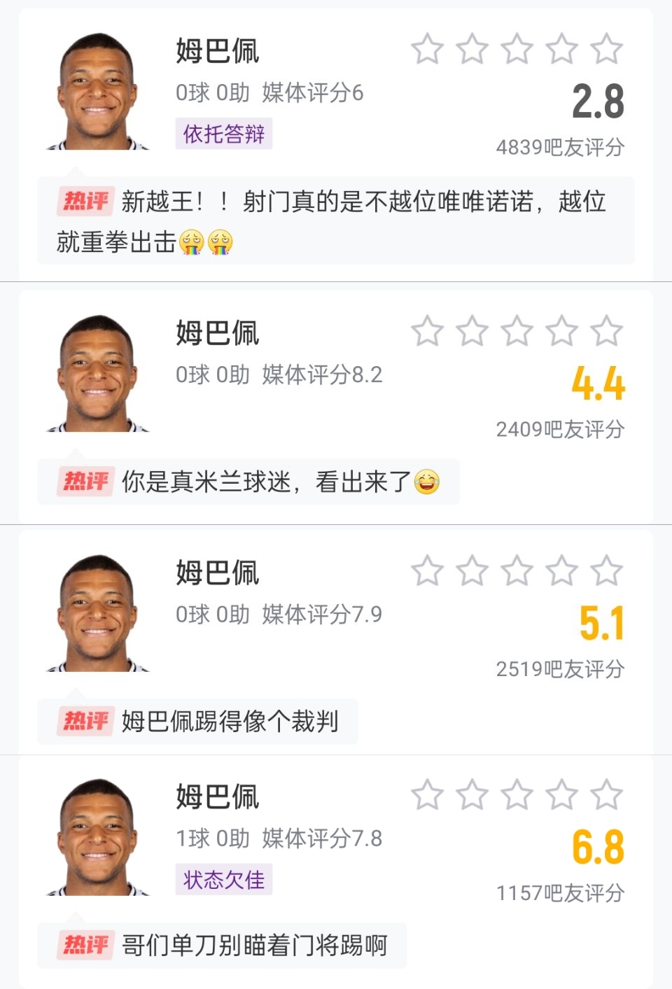 姆巴佩在皇馬近5場比賽打進(jìn)1球,在中鋒的位置上掙扎表現(xiàn)不佳,球隊(duì)在強(qiáng)強(qiáng)對話中接連大敗給巴薩和米蘭。
