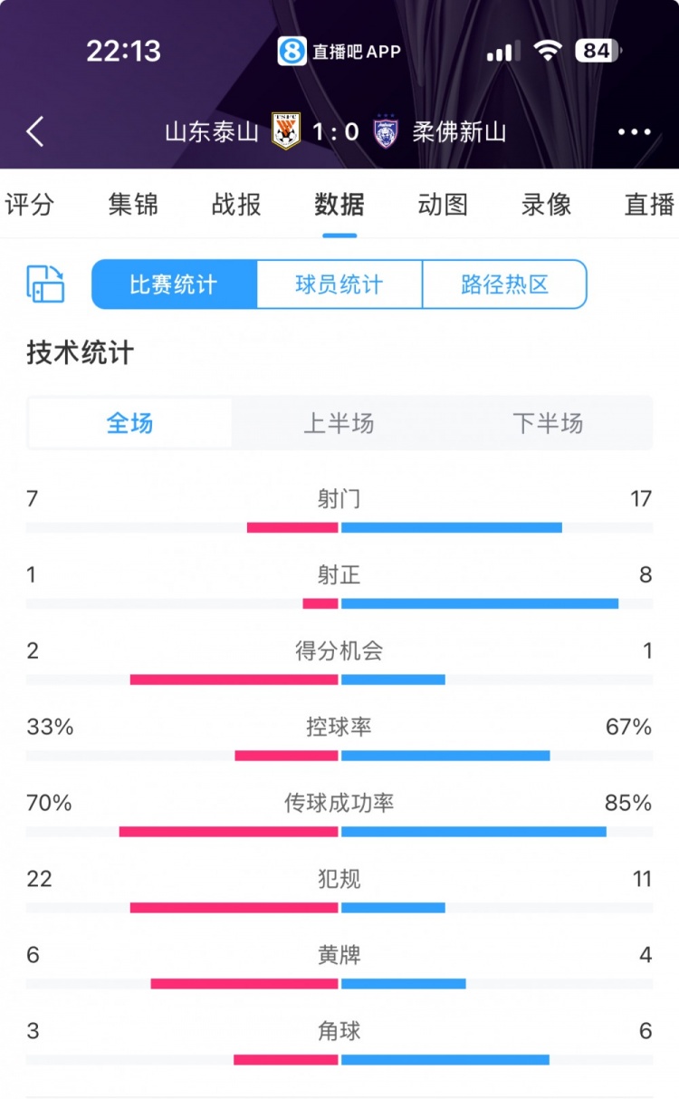 11月26日訊 亞冠精英聯(lián)賽第5輪比賽,山東泰山主場1-0擊敗柔佛新山。本場比賽,山東泰山制定了防反的戰(zhàn)術(shù),盡管場面上未有優(yōu)勢,但效率卻遠(yuǎn)高于對手,1次射正取得1個進(jìn)球,對方8次射正卻顆粒無收。