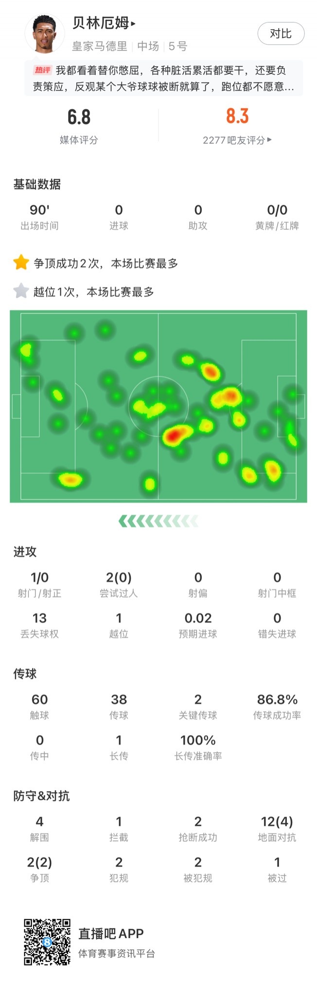 附貝林厄姆本場數(shù)據(jù):