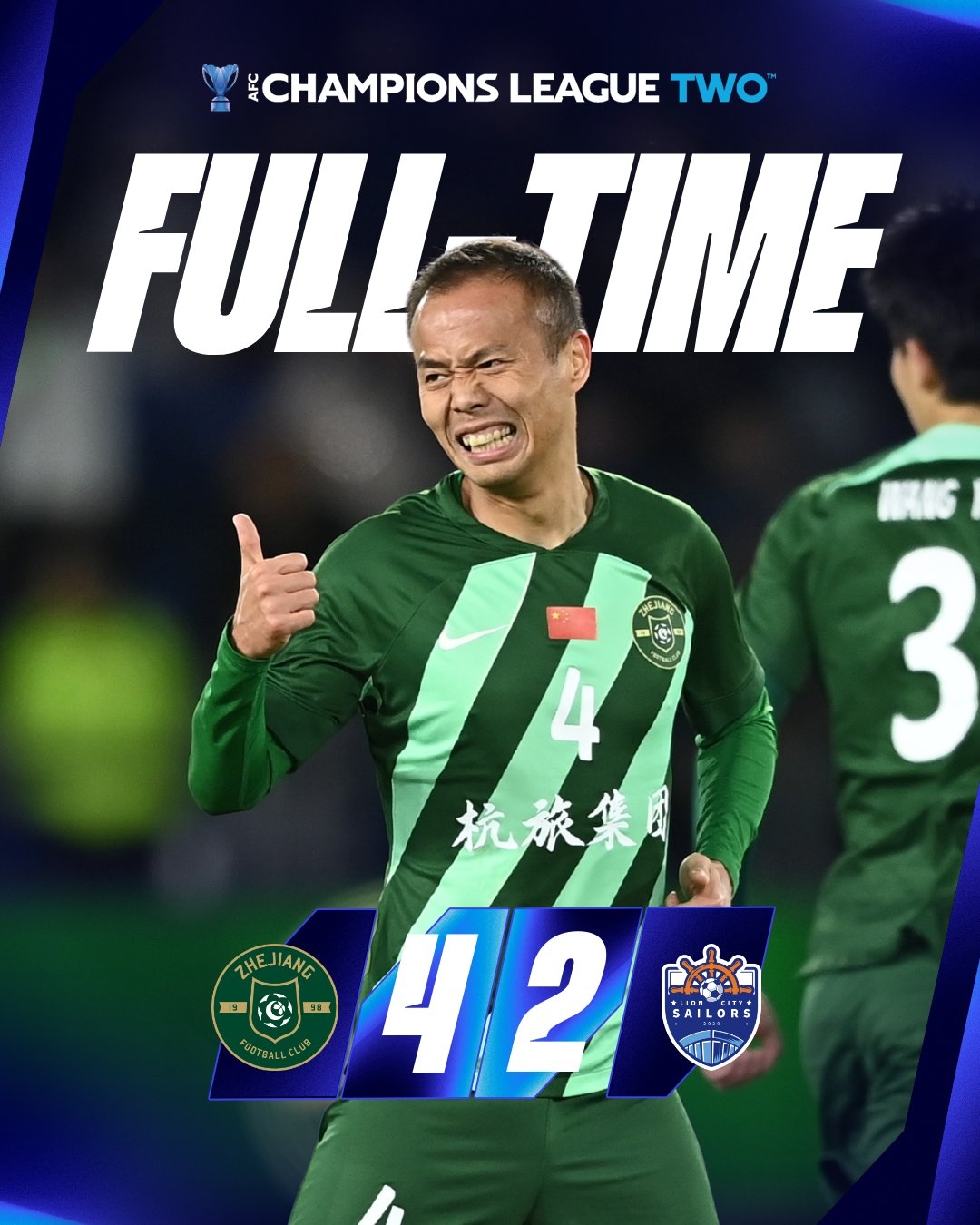 11月28日晚,亞冠二級聯(lián)賽小組第五輪的一場比賽中,浙江隊(duì)在落后兩球的情況下,下半場最后30分鐘里連入四球,最終以4-2逆轉(zhuǎn)戰(zhàn)勝對手獅城水手,為球隊(duì)保留了晉級淘汰賽階段的希望。