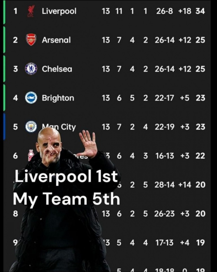 其實是:利物浦第1,我們第5