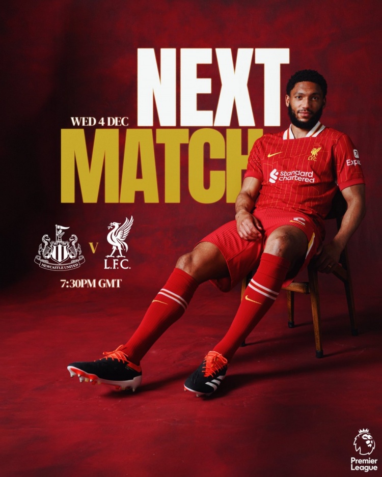 利物浦官方社媒發(fā)布為此役制作的海報,喬-戈麥斯單人出鏡。利物浦官方賬號寫道:“接下來,紅軍將在圣詹姆斯公園球場對陣紐卡?!?/p>