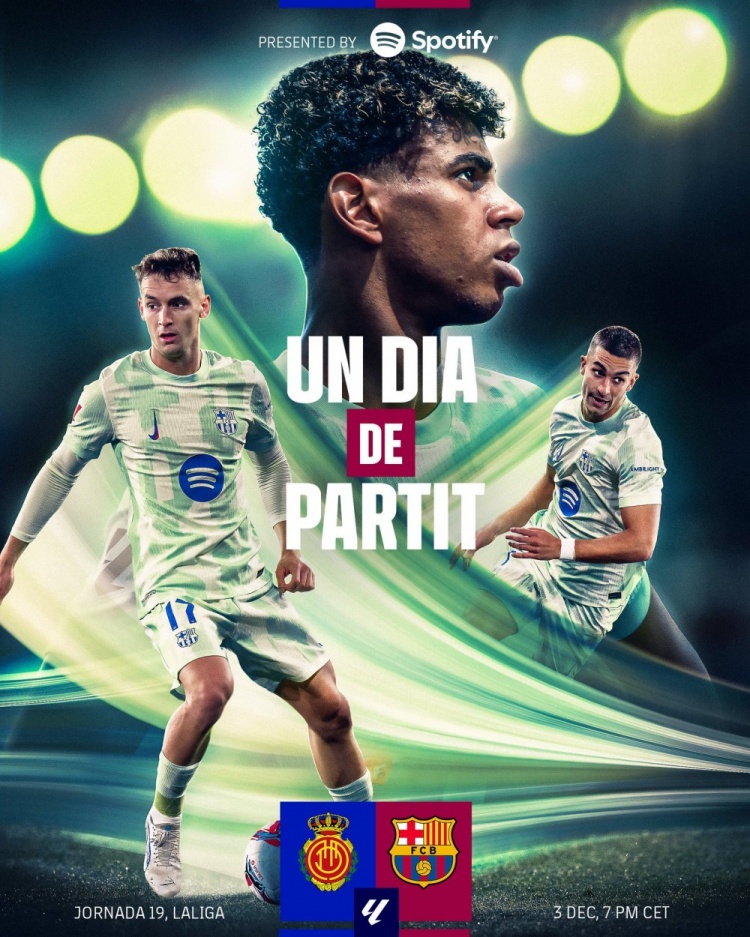 巴薩官方社媒發(fā)布了為此役制作的海報,亞馬爾、卡薩多、費蘭-托雷斯出鏡。