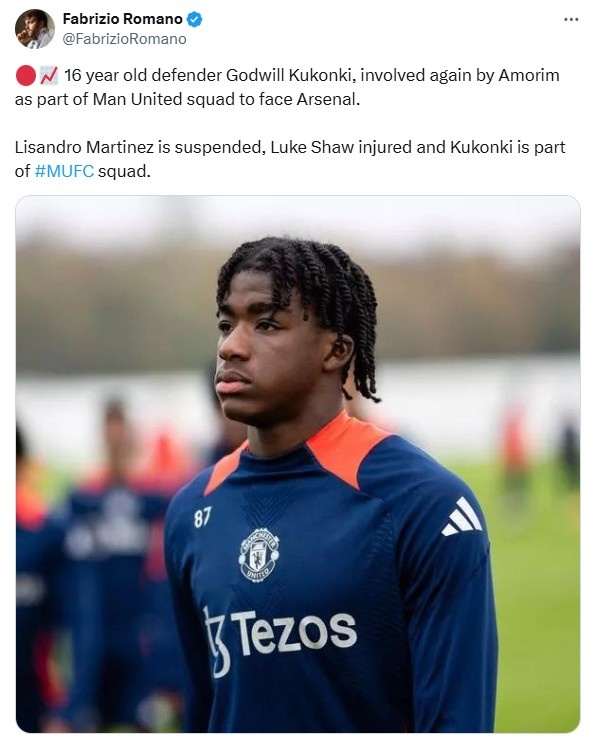 12月4日訊 曼聯(lián)將在明天凌晨的英超第14輪比賽中客戰(zhàn)阿森納,《曼徹斯特晚報》稱曼聯(lián)16歲后衛(wèi)庫孔基將入選此役大名單,羅馬諾也確認了這一消息。