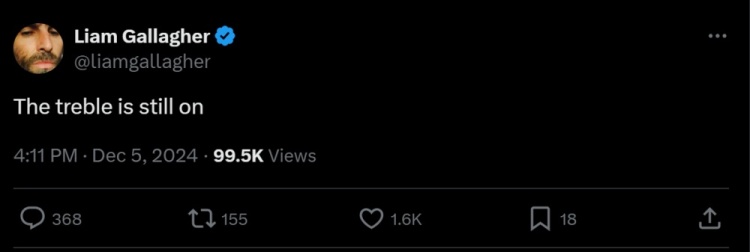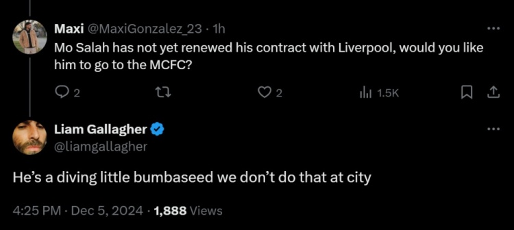12月5日訊 本輪英超比賽中,曼城一掃陰霾,3-0擊敗森林,利物浦則是戰(zhàn)平了紐卡。賽后,知名曼城球迷、綠洲樂隊(duì)主唱利亞姆發(fā)推慶祝球隊(duì)獲勝。