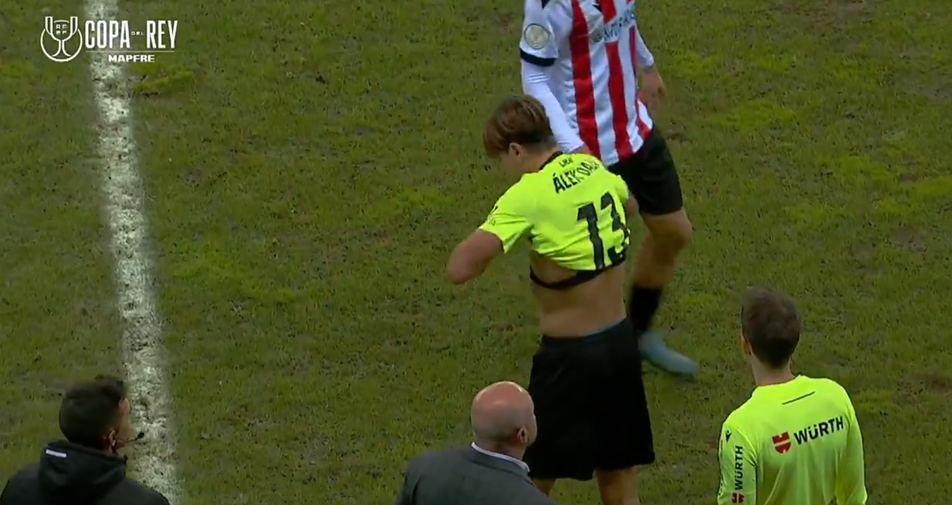 赫羅納與洛格羅涅斯在前120分鐘0-0戰(zhàn)平,洛格羅涅斯首發(fā)門將在加時賽一次出擊撲救時頭部撞傷,球隊在沒有換人名額的情況下只能讓19歲的邊后衛(wèi)阿爾諾客串門將。