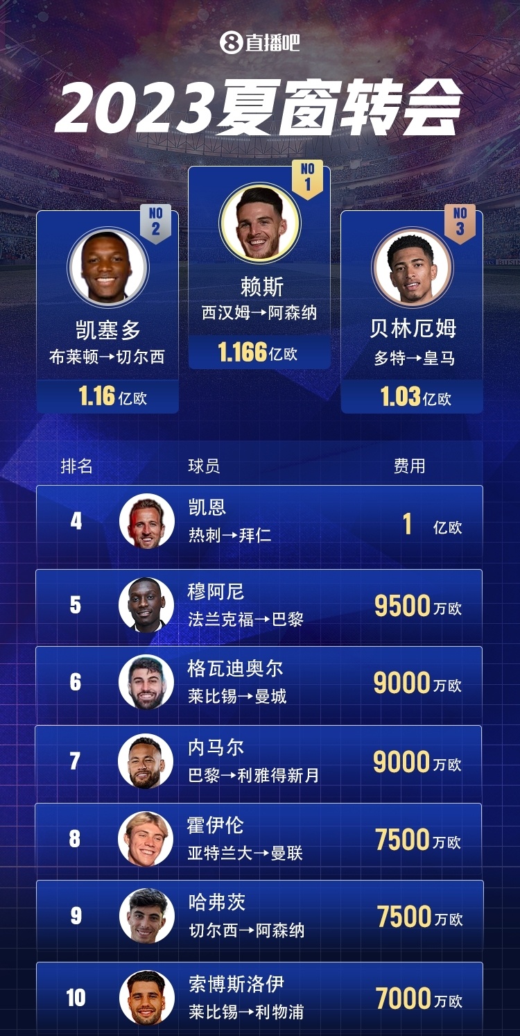 3、貝林厄姆 加盟至今共為皇馬出戰(zhàn)59場,打進27球并有18次助攻,已幫助皇馬贏得4座冠軍:1座歐冠、1座西甲、1座歐超、1座西班牙超級杯。
