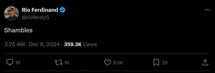 比賽結(jié)束后,曼聯(lián)名宿費迪南德更新了社媒,似乎對表現(xiàn)感到不滿意。他寫道:一片混亂。