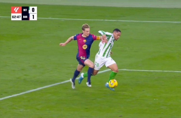 12月8日訊 西甲第16輪,巴塞羅那客場(chǎng)2-2戰(zhàn)平皇家貝蒂斯。比賽下半場(chǎng),羅克在德容的防守下在禁區(qū)內(nèi)倒地,主裁判經(jīng)VAR回放,判罰點(diǎn)球。