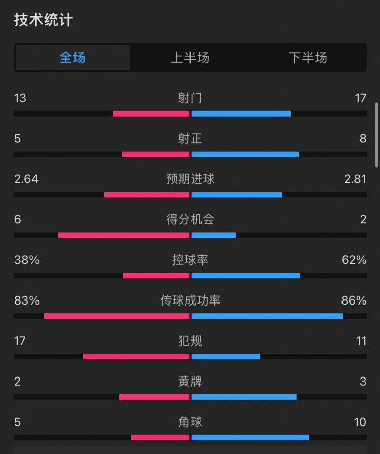 本場(chǎng)比賽主要數(shù)據(jù)↓(左熱刺-右切爾西)