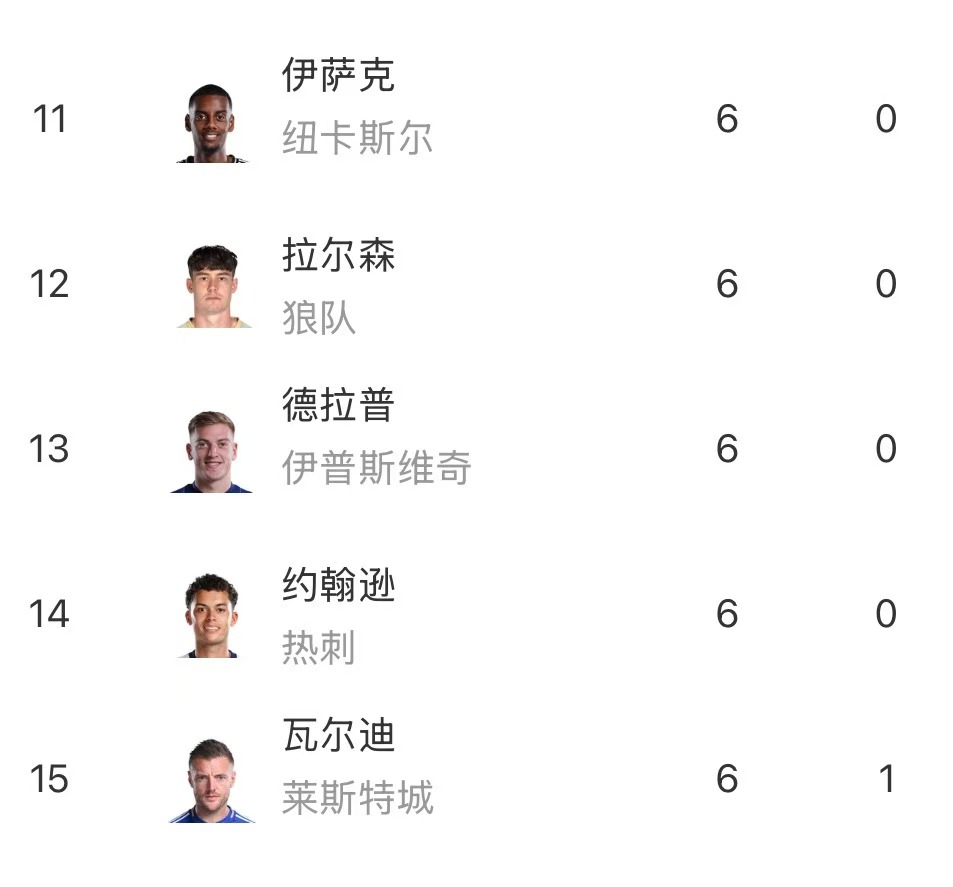 阿森納隊(duì)中聯(lián)賽射手王是薩卡和哈弗茨,兩人都打進(jìn)5球并列射手榜第16位。