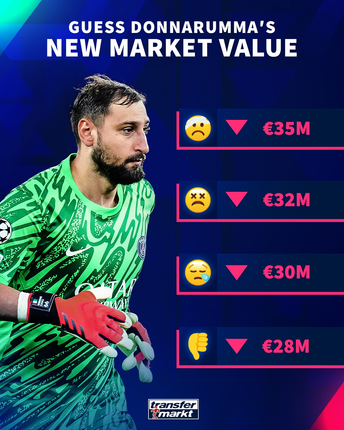 12月10日訊 法甲球員身價(jià)將更新,德轉(zhuǎn)曬海報(bào)預(yù)熱巴黎門將多納魯馬身價(jià)變化。