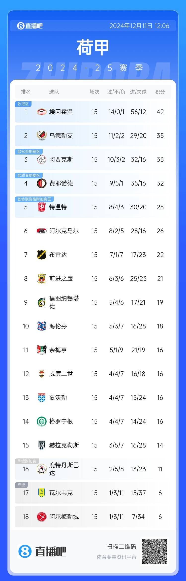 12月11日訊 歐冠第6輪比賽,埃因霍溫0-1不敵布雷斯特,荷甲巨無霸吃到歐冠第2敗。