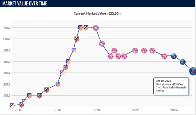 12月11日訊 昨天德轉(zhuǎn)更新了法甲球員身價(jià),28歲的盧卡斯-埃爾南德斯身價(jià)下跌至3200萬歐。而在凌晨的歐冠,盧卡斯才傷愈復(fù)出迎來賽季首次出場。