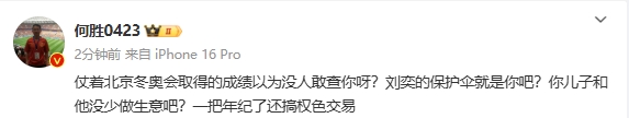 退錢(qián)哥:“仗著北京冬奧會(huì)取得的成績(jī)以為沒(méi)人敢查你呀?劉奕的保護(hù)傘就是你吧?你兒子和他沒(méi)少做生意吧?一把年紀(jì)了還搞權(quán)色交易。 ???”