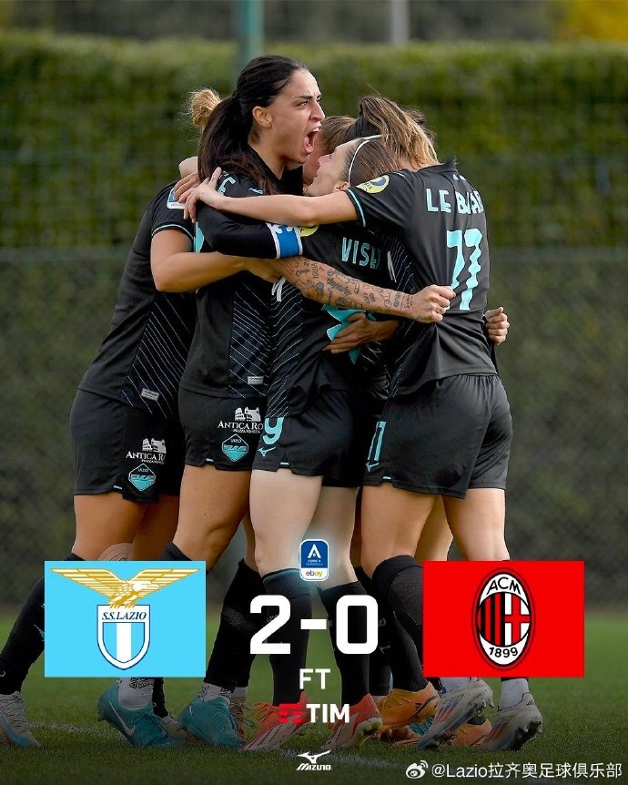 拉齊奧女足本輪對(duì)陣米蘭女足,皮埃蒙特第2分鐘和第52分鐘打入兩球,楊莉娜第57分鐘替補(bǔ)登場(chǎng)。最終,拉齊奧女足2-0擊敗米蘭,收獲本賽季聯(lián)賽的第二場(chǎng)勝利。