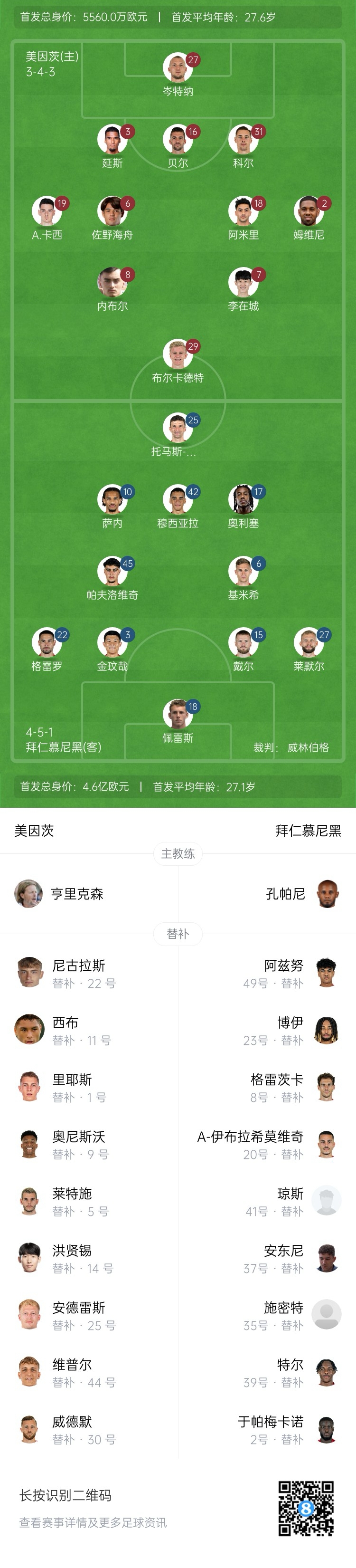 美因茨首發(fā):2-姆維恩、27-岑特納、3-延斯、16-斯特凡-貝爾、19-安東尼-卡西、6-佐野海舟、7-李在成、8-內(nèi)貝爾、18-阿米里、31-科爾、29-布卡特