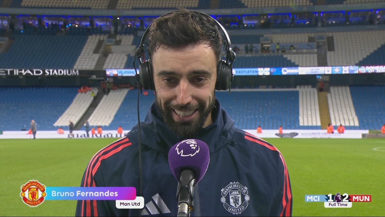12月16日訊 今天凌晨,曼聯(lián)在英超客場2-1逆轉(zhuǎn)擊敗曼城,B費賽后接受了BBC體育采訪。