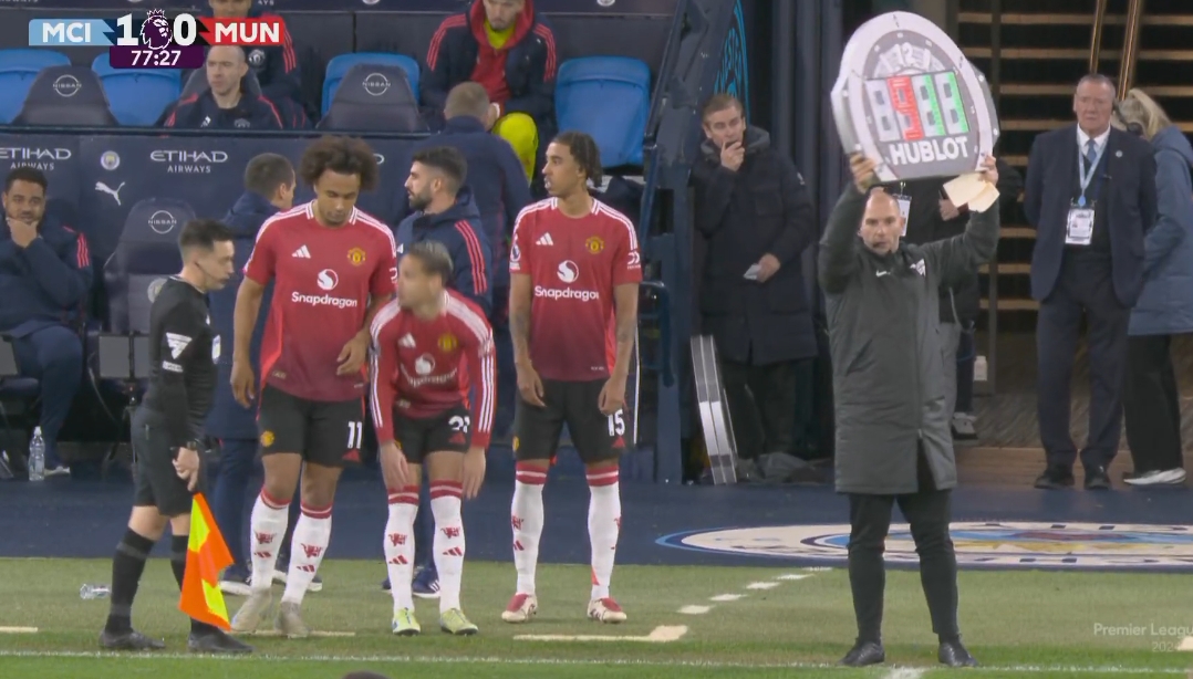 12月16日訊 曼聯(lián)vs曼城第78分鐘,曼聯(lián)連換三人,安東尼、齊爾克澤、約羅登場,德里赫特、馬茲拉維、霍伊倫下場。
