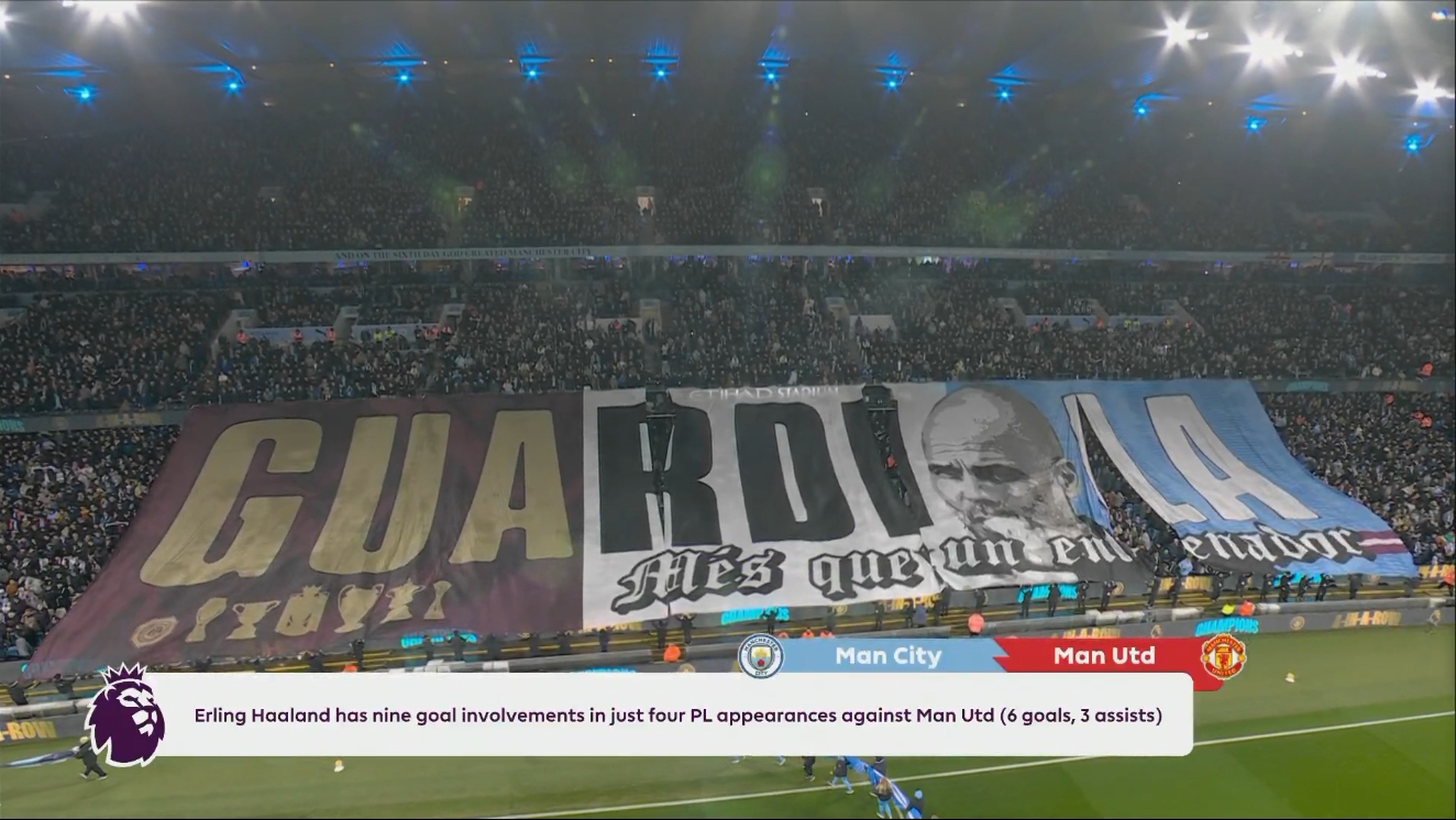 12月16日訊 本輪英超曼市德比焦點(diǎn)戰(zhàn),曼城主場(chǎng)對(duì)陣曼聯(lián)的比賽正在進(jìn)行。賽前,曼城主場(chǎng)球迷打出了巨幅TIFO,致敬功勛教練瓜迪奧拉。