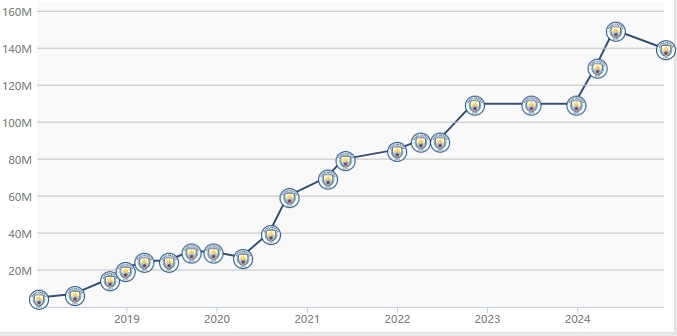 12月16日訊 德轉(zhuǎn)今日更新英超球員身價(jià),福登身價(jià)下跌1000萬歐,依然以1.4億歐身價(jià)高居英超第3。