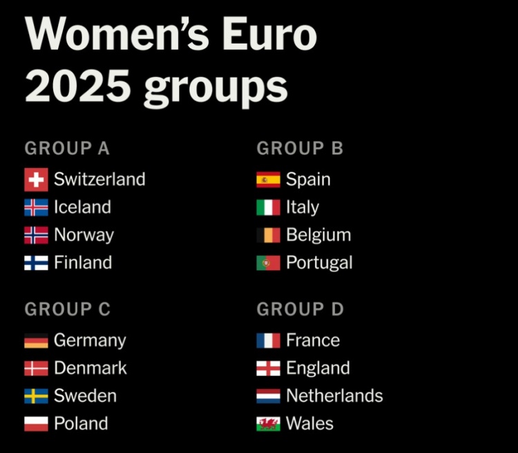 12月17日訊 2025女足歐洲杯小組賽抽簽結(jié)果揭曉,世界杯冠軍西班牙和意大利、葡萄牙及比利時同組,賽事衛(wèi)冕冠軍英格蘭將會面對法國、荷蘭及威爾士。