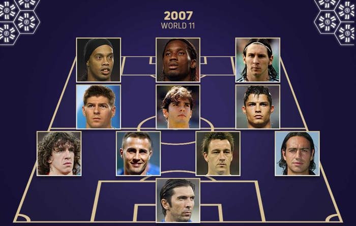 2007年最佳陣:(梅西C羅首次出現(xiàn)在年度最佳陣)