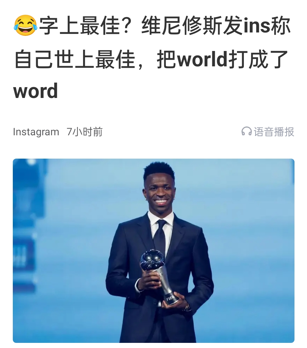 維尼修斯獲得FIFA2024年度最佳球員,這一次,沒有反轉(zhuǎn)~