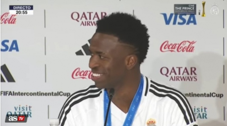12月19日訊 洲際杯決賽,皇馬3-0帕丘卡奪冠。賽后,當(dāng)選此役MVP的維尼修斯接受采訪并出席新聞發(fā)布會(huì)。