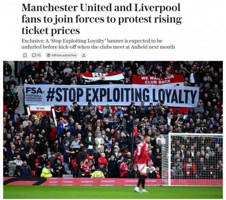 電訊報表示,兩家俱樂部的球迷計劃在1月5日的英超交鋒中舉行示威,以支持球迷協(xié)會(FSA)的#StopExploitingLoyalty(停止剝削忠誠)運動。