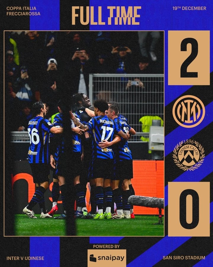 12月20日訊 國(guó)米在本輪意大利杯2-0力克烏迪內(nèi)斯,成功晉級(jí)意大利杯八強(qiáng)。