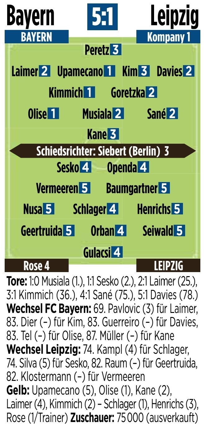 12月21日訊 在德甲第15輪比賽中,拜仁主場5-1擊敗萊比錫,德國媒體《圖片報(bào)》對兩隊(duì)球員進(jìn)行了評分,基米希、于帕梅卡諾、奧利塞1分最高。