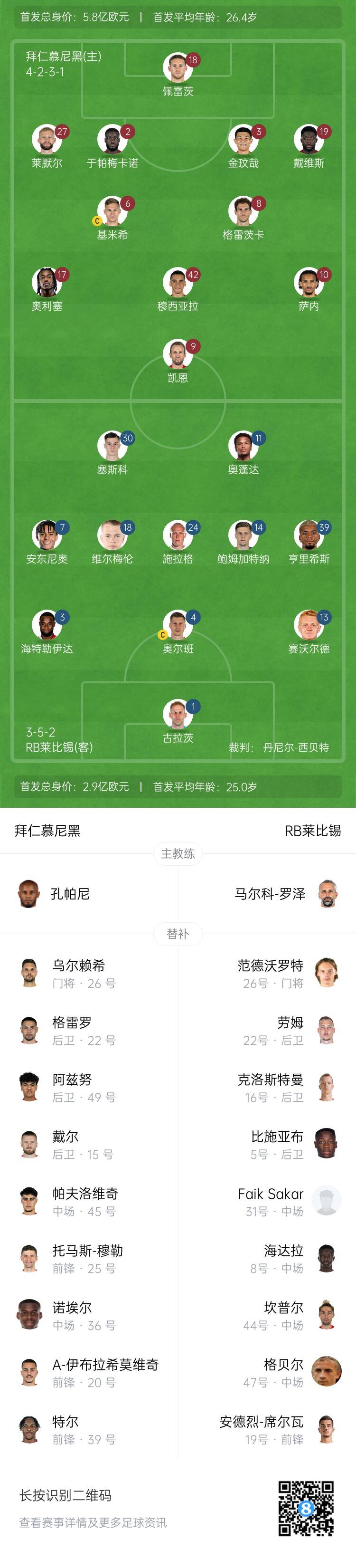 12月21日訊 德甲第15輪,拜仁主場對陣RB萊比錫。賽前,官方公布了本場的首發(fā)名單。